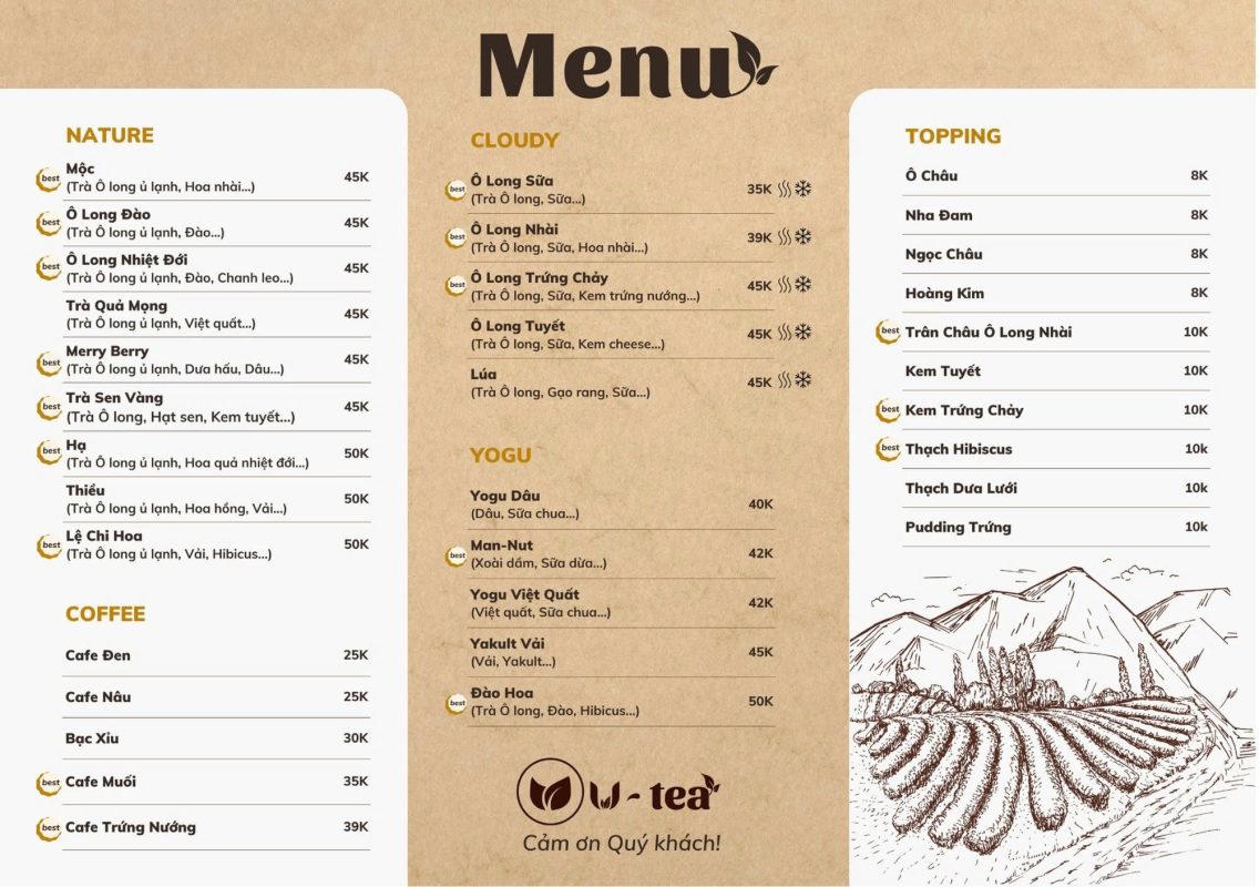 U – Tea tự hào là thương hiệu tập trung phát triển trà sữa từ trà ô long nguyên bản mộc. Tại U -Tea bạn sẽ cảm nhận được hương vị rõ rệt của bốn mùa Xuân – Hạ – Thu – Đông hoà quyện cùng hương thơm cây cỏ, đó chính là bí quyết tạo nên thành công của thương hiệu.