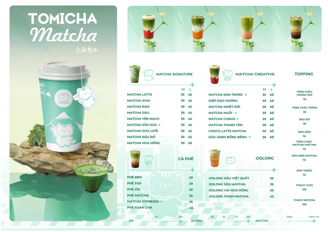 Tomicha là thương hiệu đồ uống matcha lấy cảm hứng từ những con phố nhỏ tại Tokyo, Tomicha mang đến không gian thưởng thức matcha phong cách Nhật Bản hiện đại – tươi mới, năng động và đầy chất chill dành cho giới trẻ.